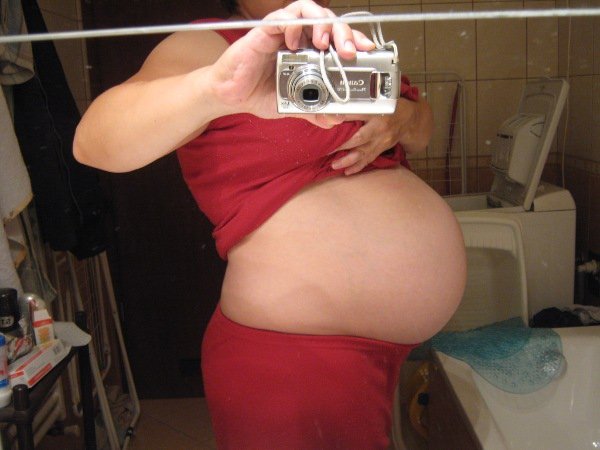 Hja, és hát tegnap megint fotóztam a hast (legalább letakarítottam a tükröt), és azt kell mondjam, már nem sok kell, hogy akkora legyek, mint mikor Dömét szültem – 3 hónap biztos, hogy nem, pedig annyi van még hátra… (utolsó képen a szülés előtti indulás állapota)